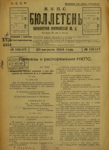 Бюллетень Управления Мурманской ж. д. 1924 г. № 116-117.