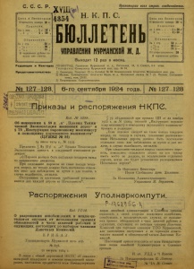 Бюллетень Управления Мурманской ж. д. 1924 г. № 127-128.