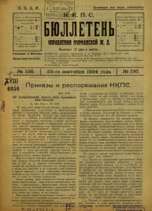 Бюллетень Управления Мурманской ж. д. 1924 г. № 136.