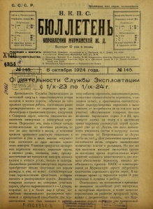 Бюллетень Управления Мурманской ж. д. 1924 г. № 145.