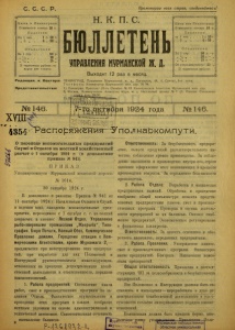 Бюллетень Управления Мурманской ж. д. 1924 г. № 146.