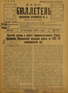 Бюллетень Управления Мурманской ж. д. 1924 г. № 147.