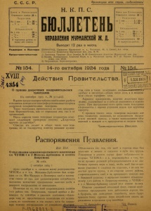 Бюллетень Управления Мурманской ж. д. 1924 г. № 154.