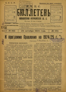 Бюллетень Управления Мурманской ж. д. 1924 г. № 162.