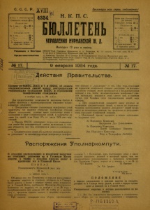 Бюллетень Управления Мурманской ж. д. 1924 г. № 17.