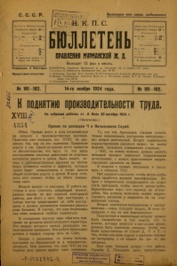 Бюллетень Правления Мурманской ж. д. 1924 г. № 181-182.