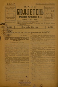 Бюллетень Правления Мурманской ж. д. 1924 г. № 193.