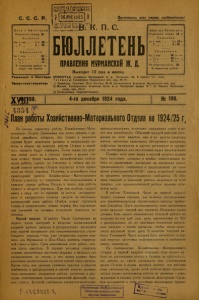 Бюллетень Правления Мурманской ж. д. 1924 г. № 198.