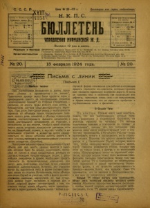 Бюллетень Управления Мурманской ж. д. 1924 г. № 20.