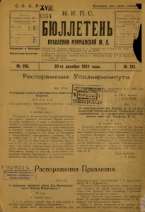 Бюллетень Правления Мурманской ж. д. 1924 г. № 215.