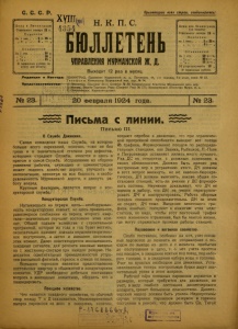 Бюллетень Управления Мурманской ж. д. 1924 г. № 23.