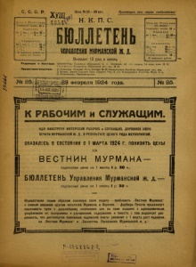 Бюллетень Управления Мурманской ж. д. 1924 г. № 25.