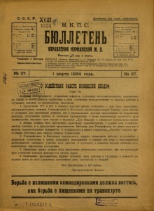 Бюллетень Управления Мурманской ж. д. 1924 г. № 27.