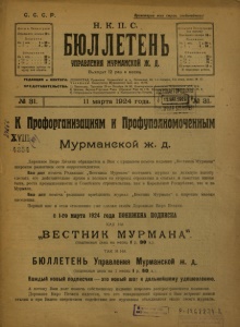 Бюллетень Управления Мурманской ж. д. 1924 г. № 31.