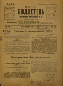 Бюллетень Управления Мурманской ж. д. 1924 г. № 36.