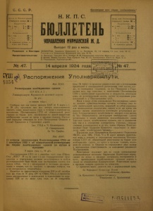 Бюллетень Управления Мурманской ж. д. 1924 г. № 47