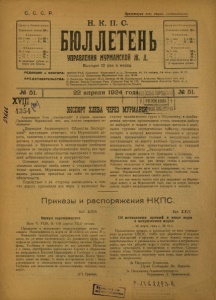 Бюллетень Управления Мурманской ж. д. 1924 г. № 51.