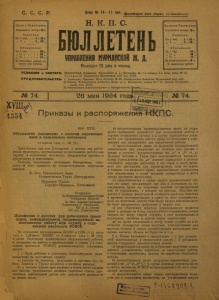Бюллетень Управления Мурманской ж. д. 1924 г. № 74.