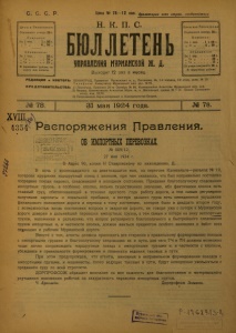 Бюллетень Управления Мурманской ж. д. 1924 г. № 78.