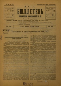 Бюллетень Управления Мурманской ж. д. 1924 г. № 84.