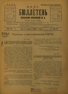 Бюллетень Управления Мурманской ж. д. 1924 г. № 87.