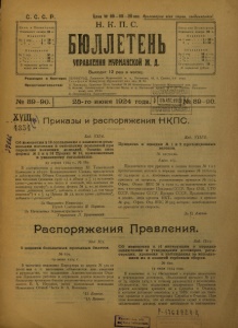 Бюллетень Управления Мурманской ж. д. 1924 г. № 89-90.