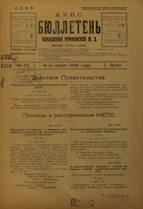 Бюллетень Управления Мурманской ж. д. 1924 г. № 97.