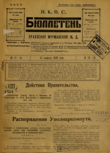 Бюллетень Правления Мурманской ж. д. 1926 г. № 12-13.