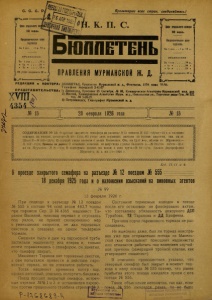 Бюллетень Правления Мурманской ж. д. 1926 г. № 15.