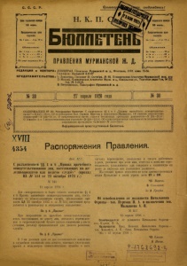 Бюллетень Правления Мурманской ж. д. 1926 г. № 30.