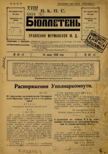 Бюллетень Правления Мурманской ж. д. 1926 г. № 40-41.