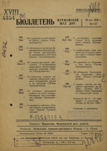 Бюллетень Мурманской жел. дор. 1926 г. № 56-57.