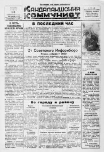 П р о л е т а р и я в е г х ст р а н , с о е д и н я й т есь ! Ѣ 6 (1751} С Р Е Д А 1 3 /ЯНВАРЯ 1843 года. Год издания XIII-S "ПЕН А НОМ£рГ7Г» КОП. ^ а м м м н и е т і О Р Г А Н ; I Е а н іа д а іт с а о г й Г о р о д м о г в ( I * Раіонного Кох ішов j I МЩб), Городсюго j I * Районного Советов j I депутатов тр у д ащ іх с я ! 8 ЧЕСТЬ ГОДОВЩИНЫ і к р а с н о й а р м и и I ірибля ж ается славна я историческия д<*та—XXV го довщина наглей героичес- кой Красной Армия. Крае вая Армия встречает свою XXV годовщину псбедонос- вым пр одвяже^.: неи вперед■ освобождением сотен сел в городов от фашистских за- х затчиков, уничтожением живой евлы и техники вра га, зэхватом богатых тро феев . Воод уше зле *■і ныа успеха • ми Красной Арман трудя щиеся советского тыла ра ботают еще самоотвержен нее еще напряженнее, еще организованнее иряб тижаи своим трудом час победы над гитлеровскими мерзав цами. 25 годовщину геройчес' кой Красной Армии, совет ские люд® встречают ьовым широким разворотом соцаа- лнстического соревнования, НОВЫМИ .up'.-завод’твечными победами. Кс:ЛЛ(?*Т,чЛ СО-;:/;-. ей же верно-тех с н ч еска х ра йо т - а акое я служащих пред приятия, где начальником тов. Меламуд, первым всту пивший в социалистяческое соревнование им. XXX' го довщины Красной Армии, показывает неплохие образ цы высоко производитель ного труда. Строительный и яернодическнй цеха это го предприятия производ ственный план яерв эн де кады перевыполни ли. Конкретные обя-татч льет т в честь ХХ\ годовщины Краской Арми? взял в на себ я раб отля к шо айлсспрол - торга. Вступила з социа- лист ичеексе copesa два н зе многие цеха II ского заво да, артель „Пол яриги" и В ПОСЛЕДНИЙ ЧАС ! 1 января на Се зерном Кавказе, груп па наших войск под командованием г е нерал-лейтенанта МАСЛЕННИКОВА И . И. после упорных боев овладела городом и железнодорожным узлом ГЕОРГИЕВСК, городом и железнодорожным узлом МИ НЕРАЛЬНЫЕ ВОДЫ, городом и ж е л е з нодорожной станцией ПЯТИГОРСК, го родом и железнодорожной станцией КИС ЛОВОДСК, городом и железнодорожной станцией ЖЕЛЕЗНОВОДСК , городом и железнодорожной станцией Б У Д Е Н НОВСК, а также районными центрами АЧИКУЛАЕ, АРХАНГЕЛЬСКОЕ , АЛЕК- САНДРШСКАИ . Взяты большие трофеи, которые подсчитываю т ся . В боях отличились войска генерал- майора ХОМЕНКО В. А„ генерал-майо ра КОРОТЕЕВА К. А., генерал-майора КОЗЛОВА П. М„ генерал-майора МЕЛЬ НИК К. И., гвардейские кавалерийские соединения генерал-лейтенанта КИР ! і • ЧЕНКО Н. Я. и генерал-майора СЕЛИ ВАНОВА А. Г., а также танковые г руп пы генерал-майора ЛОБАНОВА I . И. и подполковника ФИЛИППОВА В. И. СОВИНФОРМБЮРО. От Советского Информбюро Вечернее сообщение 11 января П января ы&шй войска на Северном Кавказе, про должая наступление, овла дели городе?.! и железно дорожным узлом Геер- гпевск, городом и желез нодорожным узлом Мине ральные Воды, городом и же л«з нод ор ожв ой с т акцией Питпгорск, городом а же* ле інодор<)жн■ »й стап !ш г*R Кисловодск, горо іом и же- яевнод< рож ной станцией Ж ел езноводе и, город г.м и л;ел ,лм .. р .лг-і о глтг лоей Буд г нновск, железно до рожным н станциями К»ра мык, Виногрудная, раг он- ныма центрами - Ачикулак, \рхангельское, Алексан* дрийекая, крупными наса ленными пунктами — Горя* чеводокая, Свобода, Ново- I’риго рь е вок о е , Прасковен, Константановская. В районе Зимовника на ши войска овладели рай онным центром Кутейнико- во, населенным-; пункта 6 улиц. В этих боях унич тожено до 400 