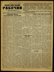 Пролетарии всех стран, соединяйтесь! КИРОВСКИИ„ РАБОЧИМ Орган Кировского райкома ВКП(б) и районного Совета депутатов трудящихся ______________________ Год издания XXI JV° 41 (3751) j ЧЕТВЕРГ, 2 3 августа 1 9 5 1 г. | Цена 15 коп. 26 августа— всенародный праздник-День шахтера. Трудящиеся всего советского Союза встречают эту знаменательную дату новыми успехами в труде. Горняки Советского Заполярья! Увеличивайте добычу апатита! Вместе с шахтерами страны трудо выми подарками Родине встретим приближающийся праздник! Труженики города и района! Отметим День шахтера стахановской работой! СОВЕРШЕНСТВОВАТЬ ПЕДАГОГИЧЕСКОЕ МАСТЕРСТВО На днях открывается августов ское совещание учителей района. Оно подведет итоги работы шко лы в прошедшем учебном году и наметит конкретные мероприя тия по улучшению дела обучения и воспитания в новом году. Большевистская партия, совет ское правительство создали на родным учителям в нашей стране неограниченные возможности для применения своих творческих сил и способностей-. Труд учителя в СССР, как нигде в мире, почетен и сам учитель окружен всенарод ной любовью и уважением. Пар тия и правительство неуклонно повышают материальное положе ние учительства. Вместе с тем к советскому учителю предъявляются и боль шие требования, вытекающие из задач коммунистического строи тельства. Советская школа при звана давать учащимся система тические здания основ наук, вос питывать и растить поколение, которому предстоит завершить строительство ков»муни?мя. Шко ла должна вооружать молодежь прочными знаниями, материали стическим пониманием законов развития природы и общества, готовить юношей и девушек к ^творческому, созидательному тру ду на благо Родины. Советская школа успешно справляется со стоящими перед нею задачами. Это хорошо видно на примере Великой Отечествен ной войны 1 9 4 1 — 1 9 4 5 гг. Со ветский народ одержал победу над врагом. Наши армии, гро мившие немецко-фашистских за хватчиков, состояли в основном из граждан, выросших при со ветской власти. В 1&50— 1 9 5 1 учебном году учителя нашего района добились некоторого улучшения учебной и воспитательной работы в школах. Повысилась грамотность учащих ся, знания стали более глубоки ми и прочными. Увеличилось число учителей, дающих полную и. приближающуюся к полной успеваемость. В конце учебного года из 4 9 6 4 человек перешло в следующий класс и окончило ^школу 4 1 9 9 учащихся, из них отличников — 9 4 и обучавшихся на/ хорошо и отлично — 8 7 8 . Десятиклассники средней школы •№ 1 и школы рабочей молодежи в количестве 47 человек полу чили аттестаты зрелости, пять из них окончили школу с золотыми и серебряными медалями. Однако в ряде школ района успеваемость учащихся остается неудовлетворительной. Особенно низкую успеваемость имеют семи- летняя школа № 6 (директор Адашкевич), Кукисвумчорр- 'ская семилетняя школа (директор тов. Кизьмичев), Хибинская се милетняя школа (директор тоз. Силин), Апаггитская средняя шко ла (директор тов. Добровидоза), средняя школа № 1 (бывший директор тов. Логвин), Титанская начальная школа (заведующая тов. Крестникова) и начальная школа известкового завода (за ведующая тов Акатина). Причи ны низкой успеваемости в этих школах кроются прежде всего в слабой постановке воспитательной работы, в проявлениях элементов формализма в обучении. Допу скается еще разрыв между про цесс