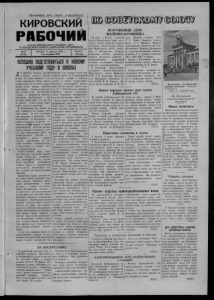 Пролетарии всех стран, соединяйтесь! КИРОВСКИЙ РАБОЧИЙ О Р ГА Н КИ РО ВС КО ГО ГО РКОМ А КПСС №91 СРЕДА , 3 августа 1955 г. Ц е н а (4159) Год издания X X V 15 коп. УСПЕШНО ПОДГОТОВИТЬСЯ К НОВОМУ УЧЕБНОМУ ГОДУВ ШКОЛАХ Д О НАЧАЛА учебных занятий в школах остается меньше месяца. В городе Кировске и по селках проводится сейчас работа, направленная на то, чтобы создать нашим детям, нашим учителям надлежащие условия в предстоя щем учебном году. Публикуемые сегодня в «Кировском рабочем» материалы рассказывают о том, как идет ремонт школ, что еще на до сделать, чтобы хорошо подго товить школы к занятиям. В предстоящем году школы на чнут заниматься по новому учеб ному плану. За счет освобожде ния программ от материала вто ростепенного и выходящего за рамки основляаук увеличено ко личество уро’)#» физики и химии; предусмотрен)? часы" для ручного труда в первых— четвертых клас сах, для практических работ на учебно-опытных участках и в мастерских в пятых — седьмых классах, практикумов по сель скому хозяйству, машиноведению, электротехнике в старших клас сах вредней школы. Новый учебный план, сохра няя общеобр?■•'■'дательный уровень знаний, пол;4: дагах учащимися, дает возмож7*,гть более успешно вести подготовку выпускников средних школ к практической деятельности, обеспечивает луч шие условия для политехнизации обучения. Важнейшая задача., которая сей час встает перед местными Сове тами, отделом народного образо вания, предприятиями — шефа ми школ — создать все необхо димые материальные условия в каждой школе для осуществления политехнического обучения. Пред приятиям разрешено безвозмездно передавать общеобразовательным школам неиспользуемое в произ водстве, но годное для политех нического обучения оборудование. Такого оборудования на предприя тиях нашего города найдется в избытке. Надо только руководите лям предприятий глубоко понять всю государственную значимость этого важного дела и быстро пере дать школам излишнее оборудо вание. У нас есть примеры такого го сударственного подхода к делу. Ремонтно-механический завод ком бината «Апатит» (начальник тов. Королев) уже передал своей под шефной школе N° 6 необходимый инструмент, готовит к отправке станки и другое оборудование. Выделила необходимый инстру мент для мастерской средней шко лы № 1 обогатительная фабрика. Комбинат «Апатит» освобождает сейчас помещение, предназначен ное под мастерскую школы № 1. Но это только первые шаги. Ряд предприятий ведет слабую подго товку школ к занятиям. Это осо бенно наглядно видно на том, как проводится ремонт школ. Заботиться об осуществлении всеобуча — значит создать все условия для нормальной учебы детей. В частности, надо привести в должный порядок здания школ, обеспечить их топливом, благо устроить школы и интернаты. Если такие организации, как управление жилищно-коммуналь ного хозяйства комбината «Апа тит» (начальник тов. Лобыничев) и ремонтно-механический завод, принимают все меры к тому, что бы своевременно и качественно отремонтировать школы, то ряд организаций города к решению этой важной задачи относится с равнодушием. Так, рудник имени С. М. Кирова (начальник тов'. Семенов) медленно производит ре монт школы № 4 в горняцком поселке Кукисвумчорр, да и ка чество ремонта желает быть мно го лучшим. Не начат еще ремонт Ёнской семилетней школы и интерн