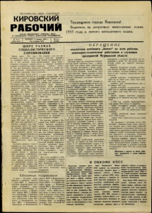 Кировский рабочий. 1955 г. Январь.
