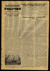 Пролетарии всех стран, соединяшпесъ! КИРОВСКИЙ РАБОЧИЙ О Р Г А Н К И Р О В С К О ГО ГО Р К О М А К П С С И ГО РО Д С КО ГО С О В Е Т А Д ЕП У Т А Т О В Т Р У Д Я Щ И Х С Я № 14 (4237) СРЕДА, 1 февраля 1956 г. Год издания XXV I Ц е н а 15 коп. ВСТРЕТИМ XX ТРУДОВЫМИ СЪЕЗД КПСС ПОДАРКАМИ! Т РУДЯЩИЕСЯ города Кировска, как и все советские люди, с глубоким удовлетворением встре­ тили разработанный Центральным Комитетом КПСС проект Директив XX съезда партии по шестому пя­ тилетнему плану развития народ­ ного хозяйства на 1956— i960 годы. Сейчас в первичных пар­ тийных организациях, на собра­ ниях рабочих, работников сель­ ского хозяйства и служащих горо­ да и поселков развертывается ши­ рокое обсуждение проекта Дирек­ тив. Коммунисты, все труженики заполярного Кировска горячо при­ ветствуют п единодушно одобряют проект Директив но шестой пяти­ летке. Как свое кровное, родное дело воспринимают трудящиеся шестой иятилетний план. И сегодня, с большой радостью встретив сооб­ щение Центрального статистиче­ ского управления прн Совете Ми­ нистров СССР об итогах выполне­ ния государственного плана раз­ вития народного хозяйства СССР в 1955 году, труженики города апатита единодушно выражают решимость не пожалеть своих уси ­ лий на претворение в жизнь на­ меченной в Директивах програм­ мы великих работ. По-деловому прошло обсуждение проекта Директив на партийных собраниях обогатительной фабри­ ки, рудника имени С. М. Кирова, в Кольском филиале Академии наук СССР и других организациях города, на собрании актива город­ ской партийной организации. Выступавшие коммунисты внесли ценные предложения, '* имеющие целью обеспечить дальнейшее раз­ витие производства, неуклонный технический прогресс, улучшение организации труда. В выступле­ ниях подчеркивалось, что задачи, поставленные в шестой пятилетке, требуют повышения уровня пар­ тийного руководства предприятия­ ми, усиления организаторской и политической работы партийных организаций. Конкретные предложения, на­ правленные на дальнейшее повы­ шение производства апатитового концентрата, были высказаны на партийных собраниях рудника имени С. М. Кирова и обогатитель­ ной фабрики. В частности, здесь говорилось, что в связи с пред­ стоящим в шестой пятилетке рез­ ким увеличением производства сырья для минеральных удобре­ ний — апатитового концентрата, необходимо быстрее решить вопрос о разработке месторождений апа­ тита в Саамской долине, осна­ стить рудник современным обору­ дованием для ускоренной проход­ ки шахт, решить вопрос комплек­ сного использования •апатито-не- фелиновых руд, механизировать трудоемкие процессы и т. д. На партийных и рабочих соб ­ раниях трудящиеся изыскивают возможности досрочного выполне­ ния плана 1956 года, сосредото­ чивают внимание на нерешенных задачах, подвергают критике не­ достатки в работе, намечают ме­ ры к пх устранению. Рабочие, инженеры, техники, труженики сельского хозяйства выражают слое стремление достойно встре­ тить XX съезд Коммунистической партии, подготовить съезду свои трудовые подарки. В проекте Директив указывает­ ся, что успешное выполнение шестой пятилетки будут решать люди — рабочпе, колхозники, ин­ теллигенция, пх самоотвержен­ ный, героический труд, будет ре­ шать организаторская работа пар­ тийных, советских, хозяйствен­ ных, профсоюзных организаций. Сейча