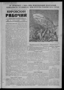 Т А Л И ! ОБЛ Б / а Я / } T f КА 2 12 ДА ЗДРАВСТВУЕТ 1 МАЯ— ДЕНЬ МЕЖДУНАРОДНОЙ ПРОЛЕТАРСКОЙ СОЛИДАРНОСТИ ТРУДЯЩИХСЯ, ДЕНЬ БРАТСТВА РАБОЧИХ ВСЕХ СТРАН! П ролет арии всех стран, соединяйт есь! КИРОВСКИЙ РАБОЧИЙ О Р Г А Н К И Р О В С К О Г О Г О Р К О М А КП С С И ГО РО Д С КО ГО С О В Е Т А Д Е П У Т А Т О В Т Р У Д Я Щ И Х С Я № 53 ВТО РНИК, 1 мая 1956 г. Ц е н а (4276) Год издания X X V I 15 коп. ПЕРВОМАЙ С ЕГОДНЯ Первомай! Рано про снутся люди. Голос нашей Ро дины— могучей и прекрасной, как сама весна, разнесет по всей зем ле гордые, вдохновенные слова: — Да здравствует 1 Мая— день международной пролетарской солидарности трудящихся, день братства рабочих всех стран! Первомай— это праздник солн ца, весны и цветов, праздник пе сни и радости. Половодье кумаче- вых знамен зальет сегодня улицы советских городов и сел, и лику ющий народ будет петь гимны труду, миру, Партин, так высоко нас возвеличившей. В лесах новостроек, в зеленом бархате полей, в цветении садов и пробуждающихся от долгого зимнего сна 'лесов, в пестрых коврах весенних цветов встречает утро Первомая наша советская земля. В запахах трав и первых подснежников, в аромате фиалок и гомоне птичьих стай, в вешних водах— большое дыхание весны— первой весны шестой пятилетки. Нынешний Первомай для нас особенно радостен. В кипении большого созидательного труда встречают его советские люди. Во всех уголках земли советской развертывается борьба за шестую пятилетку, за осуществление исторических предначертаний XX съезда партии. Светлые необозримые дали от крыла Партия перед нами. По широкой столбовой дороге идем мы тесно сомкнутыми рядами за Партией, к светлому зданию ком мунизма. Сколько больших и славных дел ждет нас в шестом пятилетии! Новые фабрики и заводы, рудни ки и шахты, мощные гидро- и атомные электростанции вступят в строй. Новые героические свер шения будут вписаны в славную летопись борьбы советского наро да за коммунизм. ...Ярче и теплее греет в эти дни солнце в нашем заполярном крае. Земля его еще лежит под снежным покровом, но веяние ве сны— и в теплых ветрах, и в по черневших дорогах, и в щедрой весенней капели. В день 1 Мая кировчане вый дут на улицы, чтобы принять участие в первомайской демон страции. Неважно, что на улицах снег— в сердцах людей Севера, бьющихся в унисон с сердцами миллионов советских людей,— беспредельное тепло любви к Родине. Одним большим дыханием со всей страной живет наш запо лярный Кировск— самый круп ный в мире центр добычи апа титов. В рядах первомайской демон страции сегодня будут идти гор няки, строители, обогатители, транспортники, энергетики, уче ные— все те, кто преобразует этот богатый край, разбуженный во лею Коммунистической партии к большой созидательной жизни. В этих рядах пройдут многие и многие передовики производ ства, люди доблестного труда, горячие патриоты родной совет ской Отчизны. Среди них будут горняки бригады Поповского, вы полнившие за четыре месяца 11 месячных норм; штукатуры бригады Дикун и маляры бригады Подалюк— славные представители коллектива строителей; члены передовой бригады Юкспорского рудника Ковалева? добившиеся в работе высоких показателей; пе редовые машинисты — водители тяжеловесных составов с апати том. Много будет их в рядах де монстрантов— славных сынов и дочерей народа, трудом своим кре пящих могущество Родины. Пусть сегодня не цветут 