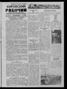 КИРОВСКИЙ РАБОЧИЙ ОРГАН КИРОВСКОГО ГОРКОМА КПСС И ГОРОДСКОГО СОВЕТА ДЕПУТАТОВ ТРУДЯЩИХСЯ Пролетарии всех стран, соединяйтесь! М 117 (4651) СРЕДА, 1 октября 1958 г. Год издания XXVIII Ц е в а 15 коп. БЫС Т Р Е Е С Т Р ОИ Т Ь КИРОВСКУЮ ГРЭС! Все выше поднимаются стены главного корпуса Кировской государственной районной электростанции. В его стены уло­ жено более полутора миллионов штук кирпича. В то время, когда каменщики продолжают наращивать стены, бетонщики ведут укладку фундаментов под мощные агрегаты электро­ станции, многие из которых уже установлены. Смонтированы два котла и проведены гидравлические испытания их, произ­ водятся испытания главного паропровода и питательной ма­ гистрали. Заканчиваются работы по подземному хозяйству. Ведутся отделочные работы по щиту управления и главному распределительному устройству и другие. Стройка кипит трудовым накалом. В бригадах проходят собрания, на которых строители берут новые социалистиче­ ские обязательства в честь предстоящего внеочередного X X I съезда Коммунистической партии Советского Союза. Бригада бетонщиков, возглавляемая В. Ивановым, работающая на главном корпусе, обязалась к 1 ноября закончить строитель­ ные работы на подземных коммуникациях котельного отделе­ ния. Каменщики бригады А. Захаренко, ведущие строитель­ ство эстакады второго подъема, дали слово к 1 октября смон­ тировать кровельные плиты эстакады до главного корпуса и к 25 октября закончить кирпичную кладку. Сдать в эксплуатацию первую очередь электростанции в декабре текущего года — таково обязательство строителей Кировской ГРЭС в честь X X I съезда КПСС . Чтобы его выпол­ нить, надо много и упорно трудиться. А на строительстве есть еще много недостатков. Трижды пересматривались сроки сдачи главного щита управления. Отделочные работы еще и сейчас не закончены. А последний срок был 5 сентября. Из-за этого тормозятся работы электриков. Очень отстает строительство угольного тракта. В стройуправлении недостает рабочих, ощущается нехват­ ка материалов, плохо используются механизмы. Бездействует башенный кран грузоподъемностью 5 тонн, предназначенный для подачи материалов. А раствор на главном корпусе к ра­ бочим местам доставляется на тачках на расстояние более 200 метров. Кран разобран по частям, и они валяются на различ­ ных участках стройки. 20 землекопов смог бы заменить ежедневно трактор-экска­ ватор «Беларусь». Машина очень легкая, с хорошей маневрен­ ностью. Она могла бы использоваться на любых земляных работах. А трактор уже два месяца простаивает из-за отсут­ ствия двух сальников к насосам. И это нисколько не беспо­ коит руководителей строительства. Недавно состоялось собрание городского партийного акти­ ва, обсудившее итоги работы сентябрьского Пленума Ц К КПСС и задачи городской партийной организации. На собрании ука­ зывалось, что строительное управление Кировской ГРЭ С не выполняет плана строительно-монтажных работ. Руководи­ тели стройки (начальник тов. Мизрухин, исполняющий обязан­ ности главного инженера тов. Гауптфогель, секретарь парт­ бюро тов. Колбасин) должны сделать для себя соответству­ ющие выводы. Пустить в эксплуатацию первую очередь электростанции в декабре текущего года — это должно быть твердым и окон­ чательным сроком. В решении этой задачи строителям ГРЭС должен оказать помо