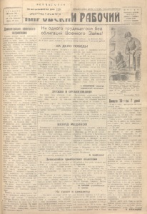 м и н Ч fei 1' и г О Н Ч Е Т В Е Р Г 10 июня 1943 г. & 42 (32 7) XIII ГОД ИЗДАНИИ ц е н я КЗ кап . Ни ш а у и д и ж е н м я д и м ц & ипЯкПЧЧАЯ Г, j/FJi ttj'JWH А ill Г V IIVI*II ПРОЛЕТАРИИ ВСЕХ СТРАН, СОЕДИНЯЙТЕСЬ! ИРАБОЧИХ О Р Г А Н (• {IH I «его В К П { б ), нш иш 1 горим** СОВЕТОВ л и т о трш м ш * Дюнвтрация советского патриотизма ' Грозное воепное время переживает наша родина. Велики испытания, вы павшие на пашу долю. Но велик, и могуч патриотизм советского народа. Для советского Человека нет большей цен ности. ®м свобода и честь отчизны. Для защиты родины, ради ее свободы и благополучия, советский иатриот го- 'fOtB пожертвовать воем. ■Ярчайшим проявлением патриотизма, беспредельной любви народа к родине, его готовности все отдать для защиты своего отечества, для разгрома врага является небывало блестящий успех Второго Госуда]>ствеикого Военного Займа. В подписке на Военный Заем наш народ проявил энтузиазм, превы сивший !все, что наблюдалось в мирные времена. Намеченная к (размещению сумма займа перевыполнена за один день! Не было нужды доказывать важность военного займа. К аждый понимает cm», и каждый советский человек ревностно выполнял свой долг. Уже к вечеру первого дня на многих предприятиях и в учреждениях нашего района подписка на заем была полностью закончена В первой пожарной команде подписка была закончена чэдез полтора часа после опубликования постановлении Совнаркома СССР о выпуске займа. , Сумма подписки составила 150 процен тов к месячному фопду зарплаты. К 18 часам 4 июня :шм>н-'шась подписка на станции, где начальником т. Пла,- хотнюк. Железнодорожники дали взаймы 'государству 148 процентов месячной зарплаты. На предприятии, где дирек тором т. Захарченко, в первый день подписалось на Военный Заем свыше 90 процентов всех работающих. Их подписка превысила фонд зарплаты всего предприятия. С огромным под'е- мом прошло размещение займа на пред приятиях"; где .начальниками тт. Зем ляков, Струнин. Шатилов и другие. В целом по району к концу дня о июня сумма подписки превысила плановую наметку. Наш народ живет единой мыслью, единым стремлением— быстрое сломать хребет гитлеровской армии и очистить родную землю от ненавистного врага. ТУ мысль каждый старался наиболее полно выразить своим участием в реа лизации займа. Кочегар, отец трех Фронтовиков т. Трошеикон, при зара ботке. в 160 рублей подписался на рублей. Работница Граиичеико, Г':)'И зарплате в 185 рублей, подписа лась на 500 рублей и сразу же всю (умму внесла наличными. Рабочий Масловский, у которого 5 сыновей на фронте, подписался на месячный ок лад. Колхозники приобрели облигаций «оввного Займа на 17.400 рублей про тив 15 тыс. рублей по плану, домохо зяйки Города— на 8 тыс. рублей. ^ти факты свидетельствуют о един стве нашего народа, его монолитной сплоченности, его пламенном патрио тизме. Подписка на за,ем продолжается. Еще' не все 'прудящиеся района'успели при- г?Т!| 1 ней участие. А приобрети : 0 легации Военного Займа желает каж дый. Подписаться па заем— дело ’fecTii мждого советского человека. Ни одного £ ^ н и н а без облигаций Военного • таково единодушное стреме- Ве советского народа. Ни одного трудящегося без облигаций Военного Займа! С неослабевающим подъемом продолжается подпаска на Военный Заем. На 9 июня сумма подписни по нашему району превысила 3 миллиона рублей. НА ДЕЛО ПОБЕДЫ Рабочий день окончен. Не прошло и 10 минут, как все собра