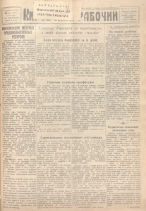 В О С К Р Е С Е Н Ь Е •20 июня 1943 г. >4 45 (3180) XII! ГОД ИЗДАНИЯ Цеха 15 нон. ми Я Ч к Г и г о К »>aJ[l«jJ!!uSKBA3|uM П8 0,5Л АО'5ддя Р1РЛ jjo'jun д >ИИ ВСЕХ СТРАН, СОЕДИНЯЙТЕСЬ! О Р Г А Н проншо piliB*» В К П { б ), dilaimrt) 1 горшмго СО ВЕТО В диуш м щ т » т МОБИЛИЗАЦИЯ МЕСТНЫХ ПРОДОВОЛЬСТВЕННЫХ РЕСУРСОВ Мобилизация местных продовольствен ных ресурсов в нынешни! условиях в о й н ы —дело огромной государственной важности. Нельзя сейчас требовать от государства того, что можно заготовить на месте. А возможноети пополнения продовольственных ресурсов раЮна у т имеются За счет охотничьего и рыбного промыслов, сбора дикорастущих мы можем иметь дополнительное мясо и рыбу, в неограниченном количестве грибы и ягоды. Истекшая зима показала, как много можно сделать при умелом подходе к делу. Лесокомбинат, военизированная пожарная команда, предприятие, кото рым руководи т. Колембет, энергично взявшись за отстрел лосей, заготовили значительное количество мяса. Лесоком бинат, например, убил за зиму 42 лося, а военизированная пожарная команда- 50. К сожалению, другие предприятия равнодушно отнеслись к организации охоты, всю зиму болтали об отстреле лосев и не убили ни одного. Понстяне неограниченными возмож ностями располагает наш район в вы лове рыбы. И там, где с душой отнес лиськ организации подледного лова, вели его энергично, достигнуты серьезные успехи. Однако большинство предпри ятий недооценили этого серьезного ис точника пополнения продовольственных ресурсов и ничего не вделали по вы лову рыбы. Сейчас озера очистились от льда, наступила весенняя путина. Но массс- вый лов рыбы пока проходит неудов летворительно В июне только один рыбтрест справляется с планом, за 16 дней он выловил 187 центнеров. Тор гующие организации, предприятия ве дут нутину из рук вон плохо. Квровск- торг, например, выловил только 400 кг., * ОРС комбината—110 кг. Такое же положение и в других организациях. Весенняя путина--ответственное дело. •)го надо понять руководителям' торгую Щих организаций и по деловому, на стойчиво взяться за организацию мас сового лова. Надо буквально в кление нескольких дней решить организацион ные вопросы: выбор водоема, комплек- Товарищ! Равняйся по передовикам , и тебе фронт скажет: спасибо! ПЛАН МЕСЯЦА ВЫПОЛНЕН ЗА 14 ДНЕЙ Много и упорно потрудился наш кол лектив в первую половину текущего месяца. Перед нами была поставлена задача: в течение июня произвести ре визию двух учагтксв. С первых же дней работа так заин тересовала коллектив, чго незаметно для самих себя -люди, отработав поло женное время, оставались "еще на 2—4, а иногда и больше часа. Не замечая усталости, линейные монтеры Омельчен ко, Козлов и Хомицевач, рабочие Луго вой, Алемов и другие работали подряд по 12—14 часов. И рано утром следу ющего дня, наскоро расставшись с вы строенным накануне шалашом, эаергич- j нее прежнего продолжали работу. Больше всех беспокоился за поручен ное дело бригадир Иванов-Никифоров. Он тщательно обдумывал план работы следующего дня А кечером, когда но следня! рабочий уходил, с участка, бри гадир занимался подборкой инструмента, мысленно строил план расстановки лю дей, каждому подбирал' работу по сно-‘ собностяи, силе и знаниям. И только тогда Иванов шел ва ночевку, когда знал, что утром для каждого есть подхо дящее дело. В результате такого упорет?а и на стойчавостк коллективу участка удалось месячны
