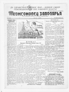 1 / ДА ЗДРАВСТВУЕ РЕВОЛЮЦИОН РВОЕ МАЯ БОЕВОЙ СМОТР СИЛ РАБОЧЕГО КЛАССА! ПРОЛЕТАРИИ ВСЕХ СТРАН, СОЕДИНЯЙТЕСЬ! wkoMcoHoncaЗаполярья ОРГАН МУРМАНСКОГО ОБЛАСТНОГО И ГОРОДСКОГО КОМИТЕТОВ ВЛКСМ № 53 (399). 1 МАЯ 1941 г. ЧЕТВЕРГ. Год издания III. Цена 15 коя. ПРАЗДНИК ВЕСНЫ ЧЕЛОВЕЧЕСТВА ЕГОД'ПЯ над миром -снова цве тет Персюмай — праздник весны человечества, великий день боевого -смотра революционных сил рабочего класса. Сквозь орудийный гром второй империалистической войны, охва тившей земной шар от Шанхая до .горных Балкан и африканских пус тынь, через моря ji океаны несется могучий призывный клич — Про летарии всех -стран, соединяйтесь! Сегодня «взоры миллионов проле тариев снова обращены к великому Советскому Союзу, где мудрая сталинская внешняя * «политика, несокрушимая мощь Красной Армии ip Военно-Морского Флота обеспечи вает свободным: народам мир и спокойствие, счастливый труд -на блиич> любимой родины, во имя победы коммунизма. Железная поступь боевых колонн первомайского парада в городах нашей «родины, грохот танков и смер тоносных 'батарей, гул воздушных эскадрилий и кильватерный строй стальных кораблей, многомиллион ный поток демонстраций будет но вым грозным предостережением под жигателям войны, Есем тем, кто попытается нарушить •спокойствие наших «границ, политику мира л нейтралитета, последовательно осу ществляемую нашим: правитель ством. ' П Р И К А З Народного Комиссара Военно-Морского Флота Союза ССР 1 мая 1941 года № 243 г. Москва Рис. Б. УХАНОВА . (ТАСС). П Р И К А З Народного Комиссара Обороны Союза ССР Советский народ, воодушевленный великими идеями Ленина—Сталина, вооруженный} решениями XVIII с’ез- да ВВЩ'б) и XVIII. партконферен ции, ни на минуту не забывает о капиталистическом окружении и изо дня в день самоотверженным трудом на в:ех участках социали стического хозяйства укрепляет экономическую и оборонную мощь Союза Советских Социалистических Республик. Новыми успехами социалистиче ского труда встречают первомай ский -праздник рыбаки Мурманска, горняки Мончегорска и КпроЕСка, строители СсЕМорпутьзавода, кол хозники тундры. В достижении этих успехов немалую роль сыгра ли ком!С€1молыцы и молодежь, проя вившие обрьзпдо трудовой инициа- тизы, сознательной дисциплины и производительности труда. .Тысячи молодых -патриотов со циалистического Заполярья — уча стников лыжного комсомольского кросса, массовых гимнастических соревнований и военизированных походов, смелых, закаленных и вы носливых ‘выйдут сегодня на улицы в праздничных колоннах, демон стрируя свою беспредельную пре данность советскому правительству, большевистской иартлк и великому Сгалнну. Под знаменами Ленина—Сталина, с музыкой и пеенями торжестзенно и радостно выходят на первомай ский праздник народы шестнадцати республик Советского Союза. впер вые в истории. свободно и счастли во, в многомиллионной семье наро де» ССОР встречают Первомай тру дящиеся Литвы, Латвии, Эстонии, Бессарабии и Северной Буковины. Туда, к сердцу родины-—Москве, к великому и родному Сталину об ращены сегодня наши шоры. Ему наш первый привет, ему наша го рячая любовь, -наши радостные песни. Да здравствует Всесоюзная Ком мунистическая партия большезпков — передовой отряд трудящихся Со ветского Союза! Да здравствует вождь и учитель трудящихся ©сего мира, наш род ной и любимый товарищ Опалин!