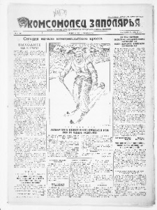 П РО Л Е ТАРИ И ВСЕХ С ТР АН , СО ЕДИН Я Й ТЕС Ь ! ЗЯПОЯЯРЬ ОРГАН М У РМ А Н С КО ГО О БЛАС ТНО ГО И ГО РО ДС НО ГО НОМИТЕТОВ ВЛКСМ № 15 (361). 2 ФЕВРАЛЯ 1941 г. ВОС КРЕСЕНЬЕ . Сегодня начало комсомольского кросса * * * ВЫХОДИТЕ НА СТАРТ! л » ЛЛИОНЫ юношей и девушек нашей гтраиы, охваченные благородным чувством, горячей люб ви к своей матери-родине, выходят на старт всесоюз ного комсомольского кросса имени XXIII годовщины 1 Красной Армши. По сигналу стартеров тысячи комсомольских команд во всех городах и селах необ’ ятного Советски™ Союза устремятся на снежные дистанции, соревнуясь на си лу, ловкость -и выносливость, доказывая свою готов ность в труде и бою быггь всегда впереди, неустанно укреплять хозяйственную и оборонную .чошь СССР. Дни подготовки к кр?)ссу явились днями нового нод’ома всей оборонной н физкультурной работы ком сомола, привлечения широких масс трудящейся моло дежи :К овладению военной и физической подготовкой, Тизвитию важнейших видов спорта. Миллионы моло дых патриотов родины встали на лыжи и успешно овладевают техникой лыжного спорта, тренируют мус кулы, закаляют волю, воспитывают в себе качества передового бойца ‘Красной Армии. Комсомолец, становись на. лыжи! — этот призыв Центрального Комитета ВЛКСМ встретил горячий от клик среди комсомольцев « молодежи Мурманской области. Молодые строители Лииской гидростанции, рыйакн-колхозннкн Терноерки, горняки и обогатите ли Кировска начали активную шодготоику к участию в комсомольском лыжном кроссе. И области быао соз дано 90S кашиц-пятерок. Больше четырех с полови ной тысяч комсомольцев приступили к лыжным тре нировкам и начали готовиться к сдаче лыжных норм ГТО. Передовые комсомольски** организации в период подготовки к кроссу, аюмнмо ’учебных тренировок, ор ганизовали и провели лыжные эстафеты, длителыгые походы по пересеченной местности в условиях, при ближенных к боевой обстановке, массовые лыжпые соревнования, развернули борьбу за внедрение льик н трудовой обдгход. Во -всей этой .работе впереди шли комсомольские ак тивисты. Руководители комсомольских организаций, в своем большинстве, проявили селя настоящими орга низаторами молодежи и личным примером увлекли комсомольцев лыжным спортом. К таким комсомоль ским -руководителям относятся секретарь Териберекого райкома ВЛКСМ тов. Рудаков, секретарь Полярного райкома комсомола, тов. Нечаев, секретарь комитета. ВЛКСМ Пива-III тов. Субботин и другие. Все секре тари райкомов ВЛКСМ сдали лыжны,* нормы' ГТО. Кросс профсоюзов, проводившийся в январе, несмот ря на неблагоприятную погоду, явился первой провер кой подготовки комсомольских организаций к своему кроссу. 2854 лыжника участвовали в кроссе профсою зов. 'Преимущественно это были комсомольцы. В дни кросса профсоюзов свыше тысячи комсомольцев cia.ni лыжные нормы ГТО. >К началу кросса, по предвари тельным) данным, -комсомольцев, еда.впигх лыжные нормы ГТО 1 и II ступени, насчитывается около двух тысяч. ЦентральныП Комитет ВЛКСМ разрешил допуск к участию в кроссе комсомольцев, не •■давших нормы ГТО по лыжам, а также разрешил малочисленным ор ганизациям создавать команды .в составе <мепсе 5 человек. Это дает возможность сделать начинаю щийся сегодня кросс еще. более массовым. Сегодпя в 11 часов дня в Мурманске, Кировске, Кандалакше, во всех городах и районах области бу дет дан старт комсо