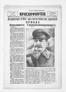 Смерть пемецним оккупантам 1 м а я 1943 г. \ 1 И Ч Я « Ш Е Ь . л и . Д Я Ш В И В В И 1 ' ЕЖЕДНЕВНАЯ КРАСНОФЛОТСКАЯ су б б от а *ГАЗЕТА' ‘ № 1 0 3 ( 1 6 6 9 ) ' ■Mr П Ъ П У т м У ■ ш ш щ С е в е р н о г о ф л о т * ------------------------------------------------------ ------------------------------------------------------------------- 1 Даздравствует1-еМая— деньсмотрабоевыхсилтрудящихся! - И . — !■ . . - ■ —--*------- ----------------------------------------- - - ' ' -------—— ’ ■ — «Ц . ■ ^ ^ П Р И К А З Верховного Главнокомандующего 1 МАЯ 1943 г. Товарищи красноармейцы в красно флотцы, командиры н политработники, партизаны и партизанки, рабочие н работ- знцы, крестьяне и крестьянки, лкГди ттеллнгентного труда! Братья ■ сёстры, временно подпавшие под иго немецких угнетателей! От именн Советского Правительства в нашей большевистской Партии привет ствую н поздравляю вас С днём 1 Мая! ~В суровые дни Отечественной войны встречают народы нашей страны день i Мая; Они вверили свою судьбу Красной Армии н не ошиблись в своих надеждах. Советские воины грудью встали на за щиту Родины и вот уже почти двВ года отстаивают честь н независимость наро дов Советского Союза. За период зимней кампании 1942—43 гг. Красная Армия нанесла серьезные пора жения гитлеровским войскам, уничтожила огромное количество живой силы и тех нике врага, окружила н ликвидировала Две армнн врага под Сталинградом, за брала в плен свыше 800 тысяч вражеских солдат н офицеров и освободила от немецкого ига сотни советских городов и тысячи сел. Зимняя кампания показала, что насту- вательная енла Красной Армии возросла. Наши войска не только вышибли немцев ' с территории, захваченной ими летом 1942 года, во и аанялн ряд городов и районов, находившихся в руках врага около полутора лет. Немцам оказалось не под силу предотвратить наступление Красной Армии. Даже для контрнаступления на узкЬм участке фронта в районе Харькова гитле ровское командование оказалось вынуж денным перебросить более трёх десятков новых дивизий из Западной Европы. Немцы рассчитывала окружить советские войска в районе Харькова и устроить вашнм войскам «немецкий Сталинград». Одеахо попытка гитлеровского командо- ваввя взять реванш ва Сталинград про валилась. Одновременно С отвм победоносные войска наших союзников разбили нтало- германские войска в районе Ливии и Триполитаннн, очистили эти районы от 'врагов н теперь продолжают их громить в районе Туниса, а доблестная англо- вмериканская авиация наносит сокруши тельные удары военно-промышленным центрам Германии, Италии, предвещая образование второго фронта в Европе вротнв нтало-немецких фашистов. Таким образом, удар по врагу с вос тока, со стороны Красной Армии, впер вые ва время войны слился с ударом с запада, со Стороны войск наших союз ников — в единый общий удар. Все вти обстоятельства, взятые вместе, вотряслн до основания гитлеровскую военную машину, изменили ход мировой войны н создали необходимые пред посылки для победы над гитлеровской Германией. В результате враг оказался вынужден ным признать серьезное ухудшение своего положения и стал вопить о военном кри- висе. Правда, враг старается прикрыть свое критическое положение шумихой о «тотальной» мобилизации. Но никакая шумиха не может отменить того факта, № 195 г. МОСКВА. что лагерь фашистов действительно пере живает серьёзный кризис. Кризис в лагере фашистов выражается, прежде всего, в том, что враг оказался вынужденным 