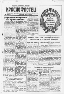 КРАСНО ПОТЕЦ Ежедневная краснофлотская газета Северного флота Ма 26 (2717) 1 февраля 1947 г., суббота Обучение матросов на тральщиках У Североморские тральщики ва- копчили кампанию. Неиссякаемую енергшо, инициативу и наа<щч№ вость, подлишую морскую закал­ ку проявили моряки на трыента. Во впереди еще (много работы. Предстоит очистить от вражесяда мин новые районы wops. Добиться еще более высотах показателей на тралении в пред­ стоящую кампанию — вот ооно®- пая задача маржой тралящих Кораблей. Нужно обобщить и веет сторонне изучить накопленный боевой опыт, вооружить &тяк «пьггом молодых матросов. В боевой учебе нориков траля­ щих кораблей особое значение приобретает одиночная подготов­ ка. Бывалые старшины обязаны Цать молодым матросам твердые (лоция по использованию техни­ ки, цривить практические навыки ее экешоатащиг, изучить ис­ пользовать корабельные приборы ■ механизмы. Надо чтобы теоре­ тические знания, приобретенные матросами в школах, были проч­ ие закреплены на практике На­ учить матросов управлять теини- кой траловых приспособлений, быстро устранять возникающие ший матрос бемкичев. Его под­ чиненные молодыематросы Макси- mo ®, Первклшшкий, вергиенко, бобкалов самостоягелш'' правят вахту у приборов. Добиться успехов в обучения молодых матросов Куликову и Семшчеву удалось благодаря j правильной методике обучения. После теореггичежкх занятий Ку­ ликов и Сёмккчев проводили тренировки на боевых постах, ва практике показывали, где находится та или иная деталь, рассказывали о ее назначении и юанмодейстаии с другими дета­ лями. Учения и тренировки тща­ тельно продумывались, в них вносился элемент внезапности, давались вводные. Но и этим де­ ло ве ограничивалось. Когда командир отделения убеждался, то» изучение того или иного при­ бора закончено, устраивался obpoc. Так закреплялись полу­ ченные ммросамж звания. Метод обучения матросов, ко­ торый применяют Куликов и бемкичев заслуживает того, что­ бы его переняли другие старши­ ны тралящих кораблей. Следует также практиковать рассказы 1ы- валых моряамукминеров, таких На Новой Земле ■‘АРХАНГЕЛЬСК (TAOC). Ост. ров Новая Земля — одни из от­ даленных пунктов Архангельской го .Приморского избяратель'ного округ#. Жители острова встречают вы. боры, кяк э влагаю ираздняк. На Новой Земле создано 8 избирай, тельных участков. Все они рае. мещены а лучина помещениях, хорошо оборудованы. Особенно празднично в эти дни в ста!яювк5це Белужья губа. Там пае раньше были только чумы, сейчас построены большее светлые дома. В ш имеется эле'ктркнесунй свег, рацию. C tj ^ новище имеет телефонную став, дню. Разве могли об этом мечтать жители острова до Советской власти! Жители острова с гордостью встречают день выборов в Вер. ховиый Совет РСФСР. НОВЫМИ УСПЕХАМИ В БОЕВОЙ ПОДГОТОВКЕ ОЗНАМЕНУЕМ ВСЕНАРОДНЫЙ ПРАЗДНИК ★ ★ ★ ★ Горячее стремлепие каждого моряка как мичман Лазаре», старшины ~ т M1 * » д“ вы I 1 стяи Пмп^ра» . Бобик, о tr™ c. «еседамо иО°™гь 1 т 6тят трыевяя. Некоторые тральщик® стали на решит. Это не значит, что на них должна превратиться &*©- вая учеба. Наоборот, в» время реатевта создаются наиболее <да- гошрнятные условия для иракпг- ческоич) изучения техника, .пере­ дачи боевого опыта моло&ыч матросам. Там, «где aiv 6y.w всесторонне продумано — ре­ монтные работы явятся .подлин­ ной школой для молодых натро­ вой. >