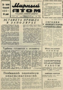 Пролетарии всех стран, соединяйтесь! До пуска Кольской . А Э С - 88 дней ОРГАН ПАРТКОМА. ОБЪЕДИНЕННОГО ПОСТРОЙКОМА И УПРАВЛЕНИЯ СТРОИТЕЛЬСТВА КОЛЬСКОЙ АЭС М 13 СРЕДА, 4 октября 1972 г. Цена ГАЗЕТА ОСНОВАНА В 1972 ГОДУ * « «он. I Строители К о л ь с к о й АЭС! ’ I ( Четвертый квартал—за вершающий этап в подго товке пуска I блока стан- | ции. Шире развертывайте соревнование за выполне ние заданий четвертого ^квартала ! | Э С Т А Ф Е Т А П Р И Ш Л А ; В З А П О Л Я Р Ь Е 3 Поддерживая инициативу передовых комсо мольско-молодежных коллективов Всесоюзных ударных комсомольских строек по мобилизации молодежи на выполнение планов 9-й пятилетки и дальнейшее ризвнтне социалистического сорев нования в честь 50-летия образования СССР, се кретариат ЦК ВЛКСМ принял постановление о проведении эстафеты среди ВУКСов под деви эом «50-летию СССР — ударный труд молодых строителей». Началась эстафета 1 февраля, финишировать будет в декабре 1972 года. Эстафета идет по нескольким направлениям. Мы приняли эстафе гу от строителей Эстонской ГРЭС 28 сентября. На промплощадке, возле памятного куска скалы ' » » “ рвого взрыпа собрались на митинг рабочие Кольской АЭС. Со знаменами ударных строек вышли пред ставнтели Эстонской ГРЭС и Кольской АЭС. В руках у комсорга одной из комсомольско-молодеж ных бригад Эстонской ГРЭС горит факел эста феты. на котором награвированы названия прой денных этапов. Теперь на нем будет значиться и наше имя. Митинг открыл секретарь парткома строи тельства тов. Михайлов А. Г. Он поздравил кол лектив строителей Кольской АЭС с этим боль шим событием в жизни молодежи стройки. Се кретарь комитета ВЛКСМ Эстонской ГРЭС тов. , Супрун В. В. рассказал о делах их стройки и ( иередал рапорт о трудовых победах к достнже- 1( ннях. С ответным словом выступил секретарь ко- , | мотета ВЛКСМ тов. Дубовик В. Со словами яри- (| иетствия и доброго напутствия обратился к го- .> стям главный инженер стройки тов. Курганов В. Е. , ( Факел приняла лучшая комсомольско-моло- i1 дежная бригада Н. Г. Белоусовой. Надежда 11 Григорьевна заверила всех присутствующих на 11 митинге в том. что молодежь ее бригады с че- , i стью пронесет эстафету и приложит максимум | > усилий для выполнения решений партии и пра- <I вительства о пуске КАЭС в намеченные сроки. 11 Гости из Эстонии побывали на всех объектах 1 нашей стройки, много внимания им уделила ком- •(I сомольская организация СЗЭМа. Во всех ветре- , i чах с посланцами Эстонии завязывались ожив- , I ленные беседы, говорили о работе, делились , I опытом есть чему поучиться у эстонцев. . ведь у них уже седьмой блок пускают' , Эстафета ударных строек от нас дальше пой- (j дет иа строительство Волжского автомобильного (( завода г. Тольятти 20 октября 1972 года. А. ВИТКИН , I » начальник штаба ВУКС. 11 • ПУЛЬС СТРОЙКИ С Е Г О Д Н Я У ИНИЦИАТОРОВ СОРЕВНОВАНИЯ НА ТРУДОВОМ КА- ТОР СОРЕВНОВАНИЯ ЛЕНДАРЕ СТРОЙКИ ЗА ДОСТОЙНУЮ ВСТРЕ- СЕГОДНЯ СТОИТ ЦИФ- ЧУ 50-ЛЕТИЯ ОБРА- РЛ 88 СТОЛЬКО ДНЕЙ ЗОВЛНИЯ СССР. СЕ- ОСТЛЛОСЬ ДО ПУСКА ГОДИН ВСЕ 11 БРИГАД ПЕРВОГО БЛОКА УПРАВЛЕНИЯ ТРУДЯТ- СТАНЦНИ. И ЧЕМ СЯ ИОД ДЕВИЗОМ «15 МЕНЬШЕ ДИЕП ОСТА- СОЮЗНЫХ РЕСПУВ- ЕТСЯ ДО ПУСКА. ТЕМ ЛИК 15 УДАРНЫХ ВЫШЕ ТРУДОВОЙ НА- НЕДЕЛЬ». КАЛ. ТЕМ СТРЕМИ- ПОЗАДИ ДВЕ НЕДЕ- ТЕЛЬНЕЕ ТЕМПЫ РА- .111 СОРЕВНОВАНИЯ. БОТ. за КОТОРЫЕ В КОЛ- КОЛЛЕКТИВ СТРОИ- ЛЕКТИВЕ ПРОИЗОШЛИ ТЕЛЬНОГО УПРАВЛЕ- ДОВОЛЬНО ЗНАЧИ- НИЯ № 1 ПНИЦИА- ТЕЛЬНЫЕ СОБЫТИЯ Турбины готовятся к эк