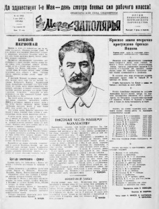 Да здравствует 1-еМая-день смотра боевых сил рабочего класса! ПРОЛЕТАРИИ ВСЕХ СТРАН, СОЕДИНЯЙТЕСЬ! )Y; 45 (955) 1 мая 1342 г. ПЯТНИЦА Гоа икания !Х. Цена 10 коп. Ш Ш Ш ОРГАН П О Л И Т О Т Д Е Л А М У Р М А Н С К О Г О П А Р О Х О Д С Т В А Выходит 3 раза в неделю. БОЕВОЙ ПЕРВОМАЙ Впервые за много лет первомайские дни, по же ланию трудящихся, об'лыены рабочими днями. В этом желании ярко выражена демонстрация советско го патриотизма, неукротимое стремление вашего на рода дать больше продукции фронту, быстрее разгро мить немецких оккупантов. Предмайское социалистическое соревнование, раз вернувшееся в нашем бассейне, выявило десятки но вых бригад, сотни стахановцев военного времени, дающих по две и больше норм выработки. Бригада тов. Попова, завоевавшая переходящее красное знамя, п тепс-нно набирая темпы, улучшая организацию труда, добилась в апреле серьезных успехов, выполнив! месячное задание свыше 200 процентов. В нынешний Первомай трудящиеся страны Со ветов проведут смотр своих сил лсд боегымн ло зунгами Центрального Комитета большевистской партии, призывающих пролетариат всех стран соеди ниться для борьбы против немецко-фашистских зах ватчиков, требующих от каждого советского патриота увеличить выработку продукции, дать фронту больше вооружения, боеприпасов, снаряжения, — всего необходимого для нужд героической Красной Армии и Военно-Морского Флота. Как боевой приказ восприняли моряки и порто вики призыв сталинского центрального комитета ВКПГб) к работникам морского и речного флота о том, чтобы 'быстрее продвигать фронту роенные транспорты, доставлять фронту и тылу больше нефти, угля, металла, леса и хлеба! Этот призыв моряки Заполярья повседневно пре творяют в жизнь, помогают своим честным и само отверженным трудом громить фашистскую нечисть. В любую погоду, метель, ітургу и туман выхо дило и выходит по заданиям судно, где капитаном тов. Ижмякрв. Не считаясь ни с какими трудностя ми, дружный коллектив доставляет фронту все необ ходимое. Отличная работа этого экипажа уже не раз отмечалась в приказах командования. Маленькое суденышко, которым командует м.чт >- дой энергичный коммунист Носим Иванович Хабаров, неоднократно подвергалось различным опасностям, но не было случая, чтобы сорвалась операция, чтобы не было выполнено задание. За образцовое выполне ние задании фронту капитан тов. Хабаров награжден медалью «За 'боевые заслуги». Первомайские дни моряки, портовики, судоремонт ники at строители Заполярного бассейна, как весь советский народ, отмечают новыми производствен ными подарками, сделают все для того, чтобы окон чательно разгромить гитлеровских извергов, п сяв кувіпих на великие завоевания советского народа. ВЫСОКАЯ ЧЕС ГЬ НАШЕ/ЧУ КОЛЛЕКТИВУ Бригада Ілиіічеикова - фроніу Грузчики бригад тов. Алнпчспков.а к Первому мая пришли с большими показателями но сравнению с чартом. Лучших ірееуаьтатоз в предмайском соревновании добились бригады тт. ІІеченкина, Кондрашина, Максимова, Яшина, Мокрова, Александрова и других. Стахановская работа ряда грузчиков и бригади ров отмечена правительственными наградами. Бригадиры тт. Мок ров и Александров награждены медалями «За боевые заслуги», грузчики Кондрашев и Козловцев — орденами Красная Звезда, Литвинов ■— медалью «За боевые заслуги». Бригады медаленосцев Мокрова и Александрова, готовясь до