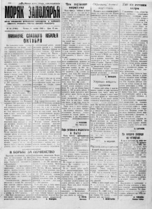 црфѵзѵйірии РСЕХ СТРАН, СОЕДИНЯЙТЕСЬ’ ОРГАН УПРАВЛЕНИЯ МУРМАНСКОГО ПАРОХОДСТВА И РАЙОННОГО КОМИТЕТА ПРОФСОЮЗА РАЬОЧПХ МОРСКОГО ТРАНСПОРТА № 34 (1 1 0 6 ), Четверг, 4 ноября 1943 г, Цена 15 ноп. НАКАНУНЕ ОКТНЁРЯ ЮБИЛЕЙ Все коллективы порта отмечают предоктябрьсі;п« дпп новым под е- м>:•[ социалистического соревнова ния, стремятся встретить славный юбилей со стахановскими подарками фронту, Родине. 05 ртом со всей убедительностью свидетельствуют производственные ' показателіт сорев нующихся бригад, групп и отдель ных стахановцев. На строительных работах брига ды откатчиков под руководствам тт. Игпашипа. Грекова, Никитенко. Васильева дают по полторы—две нормы в каждую смену. Здесь же бурильщики тт. Надуткшт, Коры- ч;в, 1 , лга, Гоманов и Цвык стали выполнять калапия >rr 20U до 2-85 процентов. Рабочие научились по-военному работать и переквалифицироваться в зависимости от луАгл припзв '.ccYba. На том же строительстве л работница Марфа Федоровна Федо рова по собственной инициативе, изучила профессию курильщика теперь работает самостоятельно. Обычная выработка тов. Федоровой составляет 180 процентов г; смену. П таких примеров только по од ной строительпо-ремонтной, конторе ножве. привести не десятки, а сот ни. Сюда приходили бригады груз чиков я через небольшой период времени становились плотниками, каменщиками. Особенно яркие образцы самоот верженного труда показали в эти дня работники механической мас терской. Бог один из примеров. Бригадам слесарей, которыми руко водят бригадиры тт. Самойлов и Мухин, поручили произвести ответ ственные работы по ре.міапх кра нов. Сроки, выполнения того зада ния были сжаты почти в два раза против обычных. 1Ь, несмотря на жесткие сроки и иа то, что в бригадах были в основном недавние ученики, только что приступивши- :к самостоятельпои работе, задание выполнено досрочно и с хорошим качеством. Выработка бригады tor . Сі-.ѵойдова составила 470 процен тов. а бригады тов. Мухина.—- 51'' процентов, ('выше трех с. по ловиной .норм дают эти брпгады и па других работач. Однако как бы ни высоки были показатели наших ):ередовиков со- ревповапня, успокаиваться на этом нельзя. Наша задача — наладить ра бот; предприятия так, как работает хороший часовой механизм. Многое в-этом отношении сделано, но дале ко не все. Подготовка к зиме еще не закон чена во всех деталях. Остались незавершенными чногие, хотя н вто ростепенные на сегодня, однако важные участки. Такие недостатки есть в комму нальном отделе в части ремонта жилых домов, а также, в подготовке больше;; а малой механизации, в шаготоьке кпалшЬипировалньгх кад ров п т. п. Ві ль только недостаточной ква- лі:Фіі;л.!,:і“Й к халатным отношени ем і, контролю можно об’яснить та- кой факт, что у нас до наступле ния настоящей зимы заморозили и вывели из строя новый крап. По добная бесхозяйственность проявле- j; \ н на ремонте столовой .V» 1, которую ремонтировали в три прие ма, а до конца работы не довели. Встречая славный юбилей Ок тябрьской ре-волюции, передовые коллективы правильно решают про должит!. предоктябрьское, соревно вание іг с утроенной энергией бо роться за четкую работу своих предприятий, за еще более высокую производительность труда. Этчт по чт.;І должен быть гплроі і. ио.ііержаи всеми портовиками, чтобы в новом соревновании с каждым днем уве личивать ИиМОЩЬ фрОНТѴ В ДвЛС Р іѵ -рома гитлеровских з