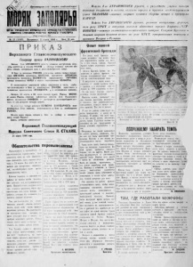 отііон, coedочайтесь! ОРГАН УПРАВЛЕНИЙ МУРМАНСК ОГО ПАРОХОДСТВА И РАЙОННОГО КОМИТЕТА ПРОФСОЮЗА РАБО ЧИХ МОРСКОГО ТРАНСПОРТА Год издания XII № 27 (1147 ). Воснресені: 2 с-г 1344 г. Цена 15 коп. а® : іивитіша Tiz-isa * Войска 1 ю У К Р А И Н С К О ГО (f-powna t результате \мьлою мовсвѵа танковых соединении и пехоты, ое.ладеяи /аролім и крупным Жглсінодорошным узлом К О .Ш І Ы Я - - важным опорным пунктом оОороны немцев в предгорьях К А Р П А Т . Поиска І-іо УК Р АИНС КО Г О фронта, развивая, наступление. форсирот ва./и реку П Р У Т и штурмом овладели областным юродом Хк-раины— Ч г ,Р - НО ВИЦЫ — важным хозяйственно-полшпическим центром ( верной- Бук тины и Мощным опорным пунктом немцев на реке П Р У Т , прикрывающим тцсшуны к границам Венгрии и Румынии. _ С _____ ' — I ■■■ ниши — ----- «дсгаддвяищда» і - яап wF&g&sir■ ■ wesson.■ ■ ^ѵ ш р щ ю е .1 w as ■-■■тгяшя ш а ж П Р ы к д ч 1 1 1 Г 1 I Ч г \ <r-J Верховного Главнокомандующего Генералу армии ШЛ/ШИОВСИОМУ Войска 3-гп УКРАИНСКОГО фронтэ, развивая наступление, овла дели крепостью и горелом ОЧАКОВ — ватным опорным пунктом обо роны немцев, запирающим вход в днепровско-бугский лиман. В боях за овладение ОЧАКОВА отличились войска генерая-полкоз- нина ЦВЕТАЕВА , полковника НИКИТИНА, полковника ДОРОФЕЕВА, артиллеристы полковника МАЗОВСК ОГО, подполковника ПОРТНОВА, саперы полковника ФУРСА и моряки подполковника НЕЙМАРКА. В ознаменование одержанной победьі соединения и части, наибо лее отличившиеся в боях за освобождение ОЧАКОВА, предсіавить к присвоению наименования «ОЧАКОВСКИХ-л и к награждению орденами. Сегодня, 31 кар га, a 20 часов столица нашей Родины МОСКВА от' имени Родины салютует доблестным зейском 3-го Украинского фронта, овладевшим ОЧАКОВОМ. --- свена/н>.атью артиллерийскими зал пами из ста двадцати четырех орудий. боевые действия ОБ’ЯВЛЯЮ БЛАГОДАРНОСТЬ всем боях за освобождение 4а аттвч руководимым Взми войскам, ОЧАКОВА. участЕовзЕш.ім а Вечная слава героям, павшим в боях за свободу и независи мость нашей Ройины! Смерть немецким захватчикам! Верховный Главнокомандующий Маршал Советского Союза И. СТАЛИН. 31 марта 1944 гоДа. Обязательства перевыполнены Опыт нашей фронтовой бригады Все люди мооіі бригады горят одним желанием как. можно боль ше переработать грузов ш Фрон та. и тем самим помочь Красной Армии скорее разгромить ненавист ного врага. Победа Красной Армии на J к- I раинских и других фронтах еще : больше воодуршвляет наги коллок- I тив на •еамоотвержеппый труд. I Б результате в марте, наши но- казателн — с.вьшю полторы норм . ! в среднем, а в отдельные іш і мы I давали по 2 0 0 процентов п ио.л- ■ J За это наш;: п іяіі ада получи 1 I пометное ала ине фронтовой. I Высокое знание обязывает нас j еще больше проявлять шпшиатнгл j I! смекалку, еще производительно" ! .использовать кяжду и» мииутѵ раб.; j чего времени. Так мы и делаем. I У нас на районе существует по рядок прикреплял к крану, по 4 ічеловека. Я решил что этого мно- J го и что вполне можно обеспечить рІМОТУі троим. Гру витки охотно со гласились на это предложение ч Включившись в предмайское со циалистическое соревнование, наш коллектив взял на себя обязатель ство выполнить план первого квар тала к 25 марта,. Для этою .ты метили ряд конкретных мероприя тий, способствующих росту ирог.з- Бодительпости труда. Рабочие боролись за высока то вы работку не только путем уплотне ния рабочего дня. но и рационализа цие