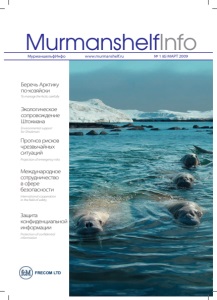 Защита конфиденциальной информации Protection of confidential information Прогноз рисков чрезвычайных ситуаций Projection of emergency risks Международное сотрудничество в сфере безопасности International cooperation in the field of safety Экологическое сопровождение Штокмана Environmental support for Shtokman Беречь Арктику по-хозяйски Tomanage the Arctic carefully FRECOM LTD Murmanshelf Info МурманшельфИнфо www.murmanshelf.ru № 1 (6) МАРТ 2009